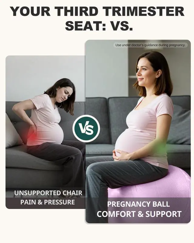 ANTI-BURST AND SECURE- With a max weight capacity of 1000LB, this birthing ball guarantees optimal safety for moms. Even when punctured by a 1*4mm sharp object, it deflates slowly to ensure user protection. Experience peace of mind during pregnancy