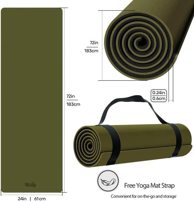 Non-slip TPE Yoga Mat for Women & Men,72"x24" Double-Sided Workout Mat for Home Gym Pilates,1/4 Inch Packable Lightweight Exercise Mat with Strap for Travel,Non Toxic Exercise Floor Mat(Green)