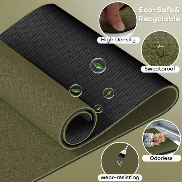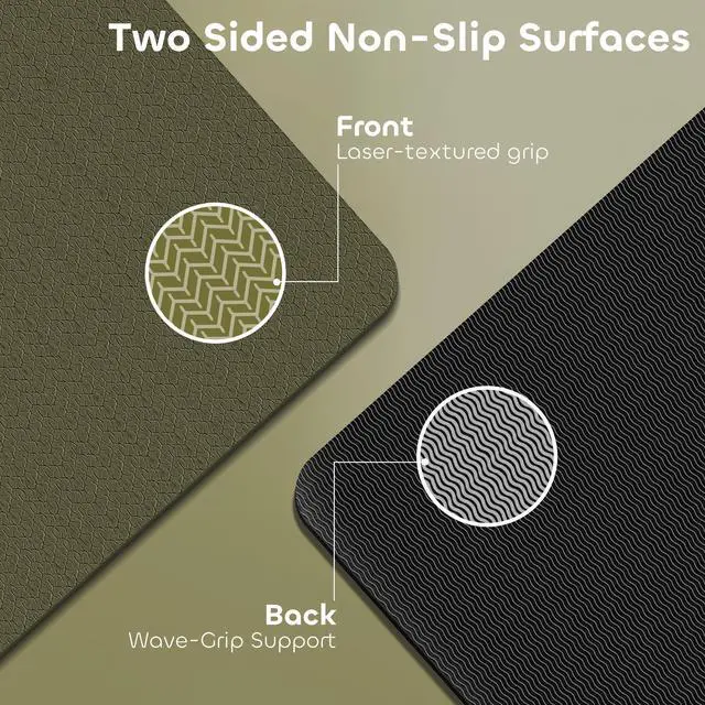 Premium TPE Material with Dual-Sided Textures: Features snake patterns on the front and wave textures on the back for 360° non-slip grip during yoga, Pilates, or high-intensity workouts. The 6mm thickness provides cushioning for joints while maintaining stability.