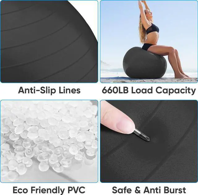 This yoga stability ball is designed with non-slip lines that provide excellent grip to prevent slipping or sliding during your workout.