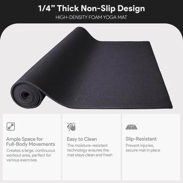 All Purpose 1/4-Inch Exercise Yoga Mat with Carrying Strap