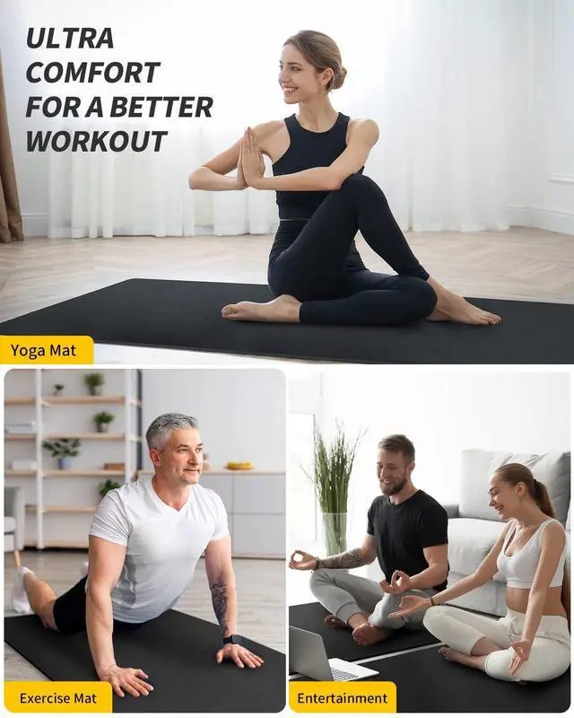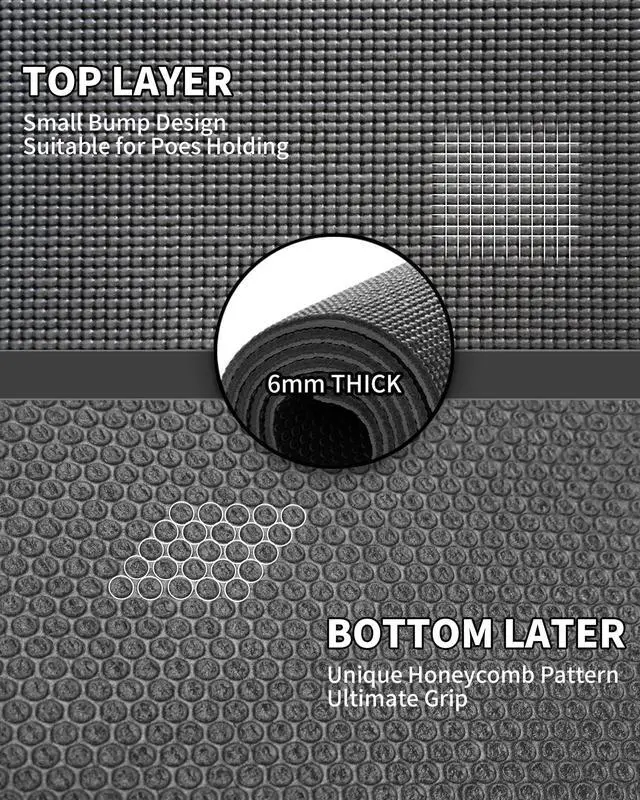 This large workout mat adds a layer of reticular fibers in the middle, which makes our exercise mat more compliant and durable, different from regular yoga mats