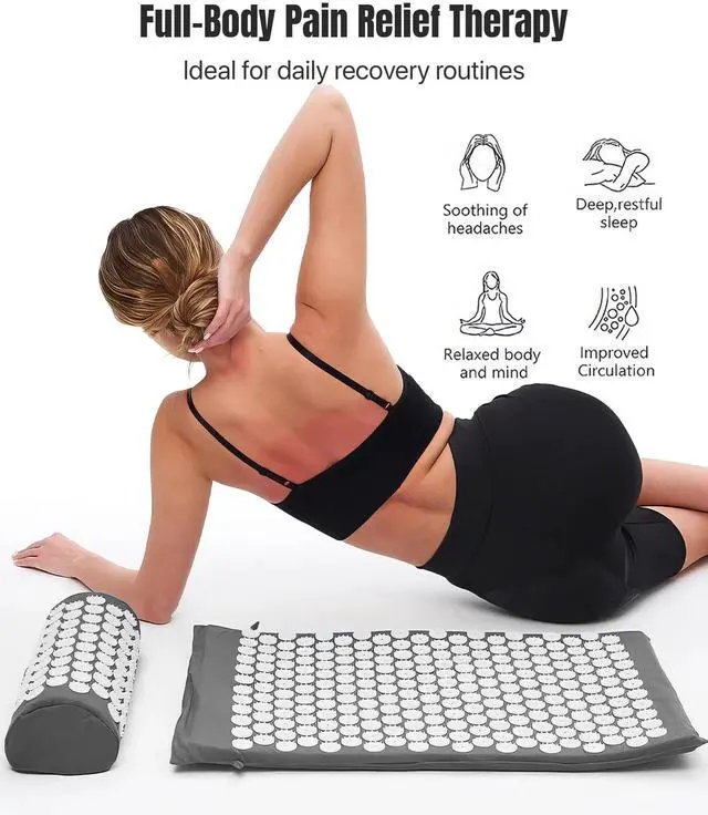 Whether you're tired from a tough workout or sitting all day at the office, this acupressure mat and pillow set helps you to recover and restore. Lie back into the massage mat to release muscle tension and mental stress at the end of the day.