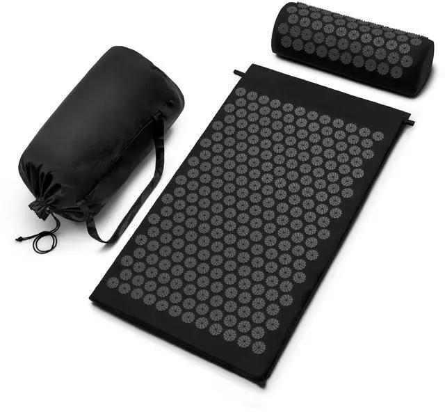 The mat & pillow features thousands of stimulation points (spikes) that apply pressure to your body & stimulate the nerve endings. This stimulates blood circulation, will help alleviate pains and aches, it will improve your overall energy levels. Carry bag included.