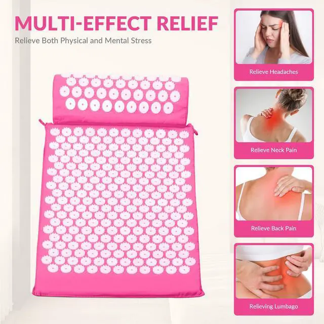 Acupressure Mat and Pillow Set for Back/Neck Pain, Acupuncture Products to Relieve Muscle Fatigue, Improve Insomnia for Sedentary People, Acupuncture Eases Stress, Massage Mat, Pink