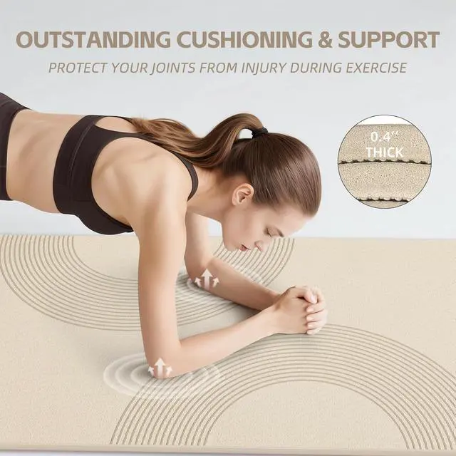 Large Yoga Mat, 72" x 36" x 2/5"(10MM) Thick Non-Slip Exercise Mat, SGS-Certified POE Material, Ideal for Home Gym, Yoga, Pilates, Fitness Workouts & Floor Mat Beige - Double C