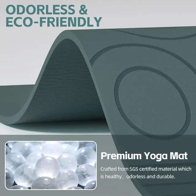 Premium POE Material: Our yoga mat is made of SGS-certified POE material, which is healthy, odorless, eco-friendly and recyclable. This material boasts high resilience, excellent tear and abrasion resistance, and a long service life. It is far superior to traditional PVC and NBR materials, and is in a league of its own compared to those cheap and conventional alternatives.