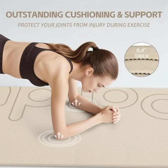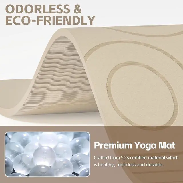 Large Yoga Mat, 72" x 36" x 2/5"(10MM) Thick Non-Slip Exercise Mat, SGS-Certified POE Material, Ideal for Home Gym, Yoga, Pilates, Fitness Workouts & Floor Mat Beige- - LOGO