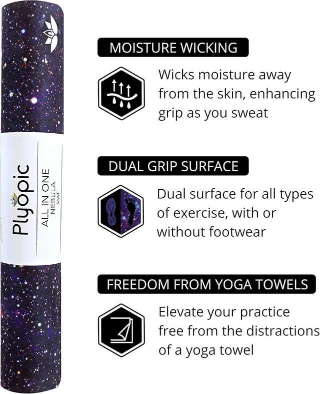 Plyopic. All In One Yoga Mat | Luxury Sweat-Grip Mat/Towel Combo | Ideal for Yoga, Hot Yoga, Bikram, Pilates, Workout & Exercise | Eco-Friendly Natural Rubber