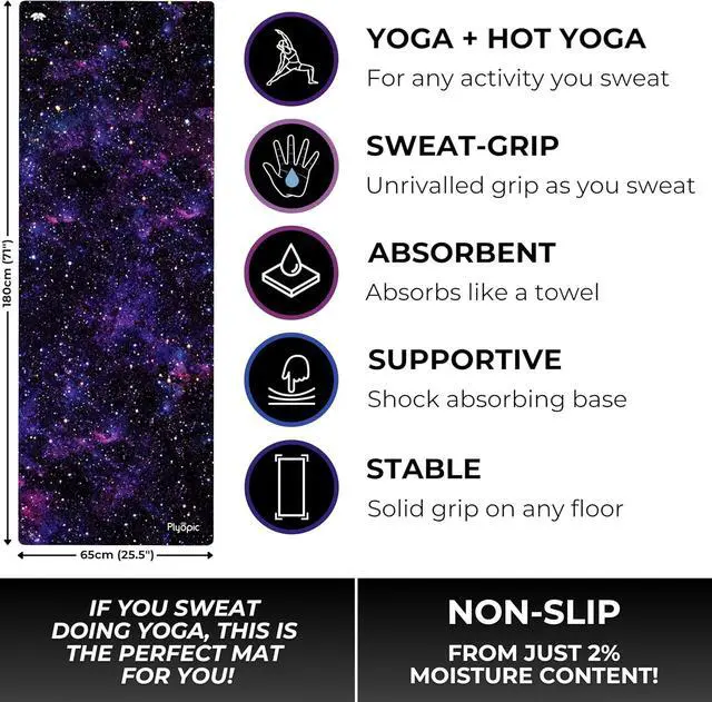 YOGA, HOT YOGA, PILATES & EXERCISE Designed for Yoga and Pilates: Ashtanga, Vinyasa Flow, Power, Hatha, Yin, Iyengar, Kundalini, Bikram and Hot Yoga. Flip your mat over and use with footwear for gym or fitness exercises.