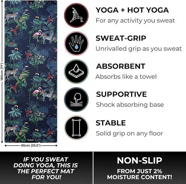 Plyopic. All In One Yoga Mat | Luxury Sweat-Grip Mat/Towel Combo | Ideal for Yoga, Hot Yoga, Bikram, Pilates, Workout & Exercise | Eco-Friendly Natural Rubber Jungle