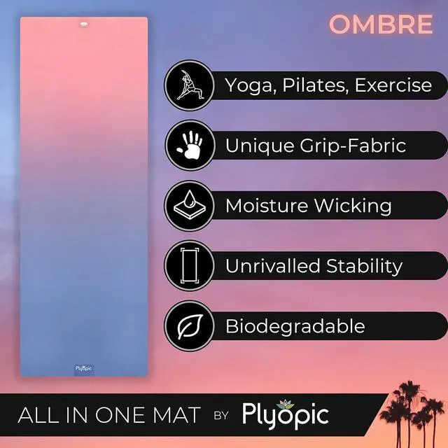 Plyopic. All In One Yoga Mat | Luxury Sweat-Grip Mat/Towel Combo | Ideal for Yoga, Hot Yoga, Bikram, Pilates, Workout & Exercise | Eco-Friendly Natural Rubber Ombre