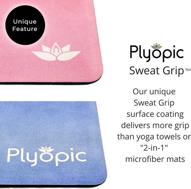 DISCOVER A NEW TYPE OF GRIP Sticky mats were designed for those who don't sweat. Plyopic mats are designed for everyone else. From moist hands to hot yoga sweats, feel strong and confident in your poses and smooth in your transitions.
