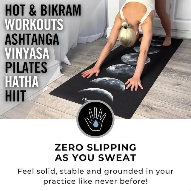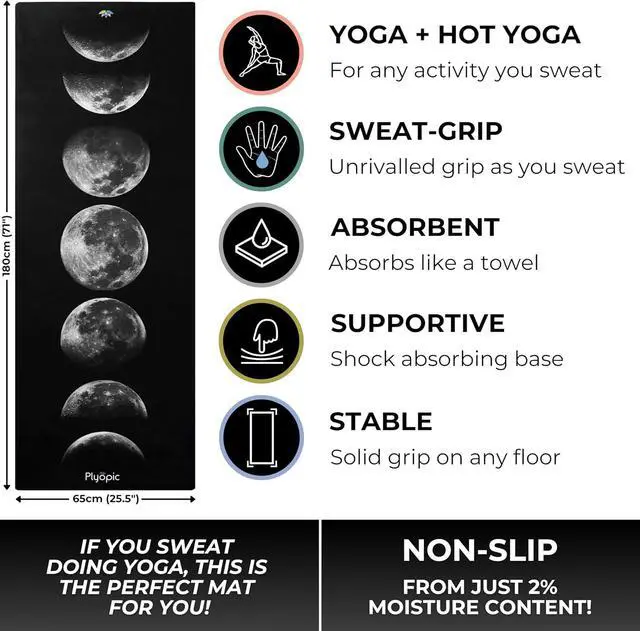 Plyopic. All In One Yoga Mat | Luxury Sweat-Grip Mat/Towel Combo | Ideal for Yoga, Hot Yoga, Bikram, Pilates, Workout & Exercise | Eco-Friendly Natural Rubber Moons