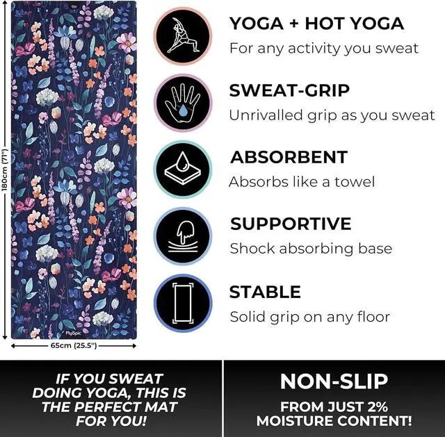 Plyopic. All In One Yoga Mat | Luxury Sweat-Grip Mat/Towel Combo | Ideal for Yoga, Hot Yoga, Bikram, Pilates, Workout & Exercise | Eco-Friendly Natural Rubber Wild Flowers