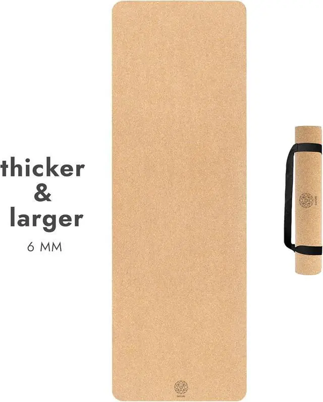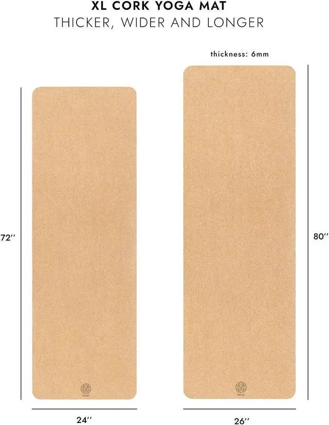 Cork Yoga Mat with Natural Rubber Base, Extra Size, Thickness and Support, Excellent Cushion & Grip, Non-Slip, Non-Toxic, Sweat-Resistant, Sustainable, Eco-friendly Exercise Mat