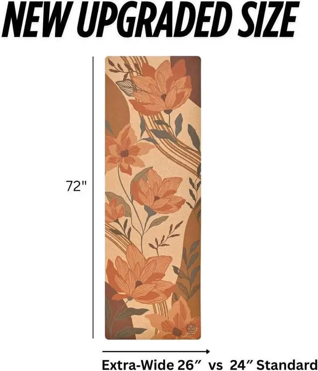 Cork Yoga Mat with Natural Rubber Base, Extra Size, Thickness and Support, Excellent Cushion & Grip, Non-Slip, Non-Toxic, Sweat-Resistant, Sustainable, Eco-friendly Exercise Mat