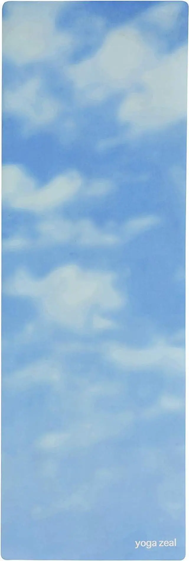 Yoga Mats By Yoga Zeal - Luxuriously Soft, Thick, Non-Slip, Hot Yoga Mat. Eco Printed. Designed to grip better with a sweaty yoga practice! Clouds Mat -LT blue