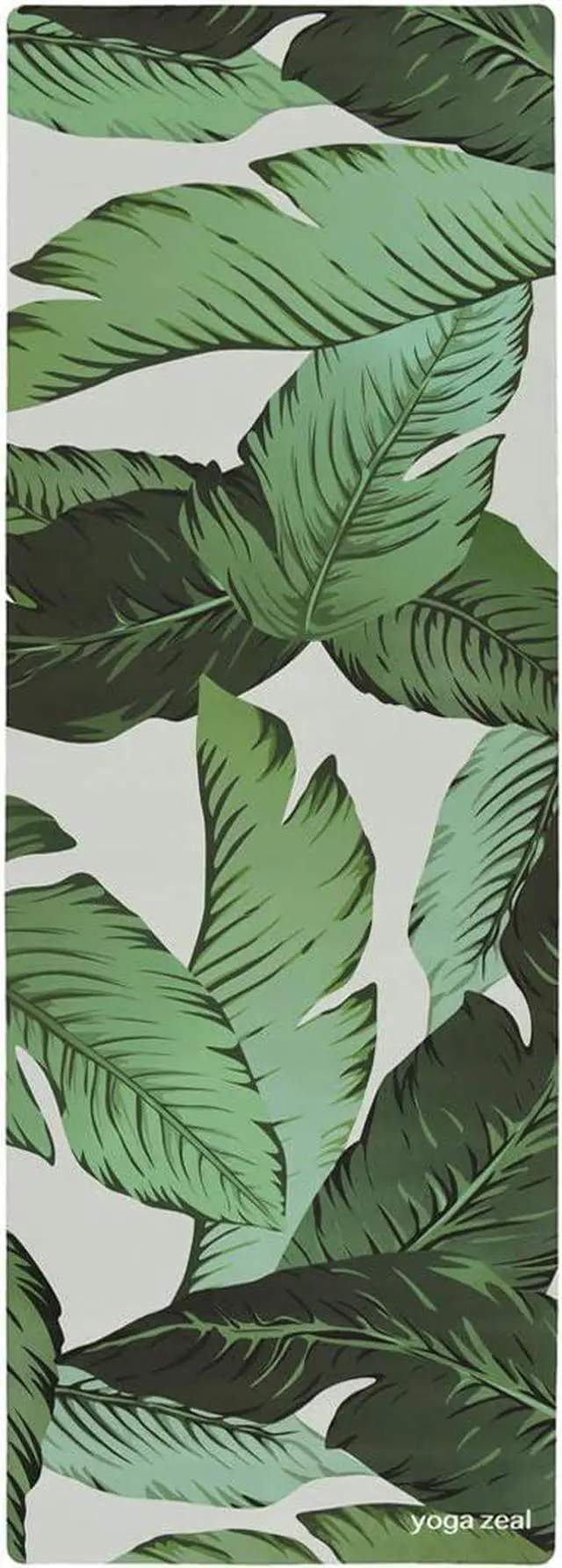 Yoga Mats By Yoga Zeal - Luxuriously Soft, Thick, Non-Slip, Hot Yoga Mat. Eco Printed. Designed to grip better with a sweaty yoga practice! Banana Leaf