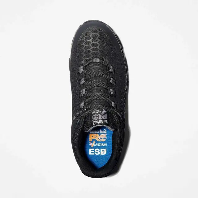 Our Timberland PRO® Powertrain Sport athletic work shoes offer lightweight performance, but they're all business when it comes to protection. Not only are they tough enough to handle working on your feet all day, they feature alloy safety toes, Anti-Fatigue Technology for all-day shock absorption and energy return, and they are designed for Electro Static Dissipating (ESD) compliance to minimize hazards from static electricity buildup. Their breathable, moisture-wicking linings are made of ReBOTL fabric containing at least 50% recycled plastic. Plus, their outsoles are made of heat-, oil-, slip-, and abrasion-resistant, non-marking polyurethane for enhanced traction and comfort.