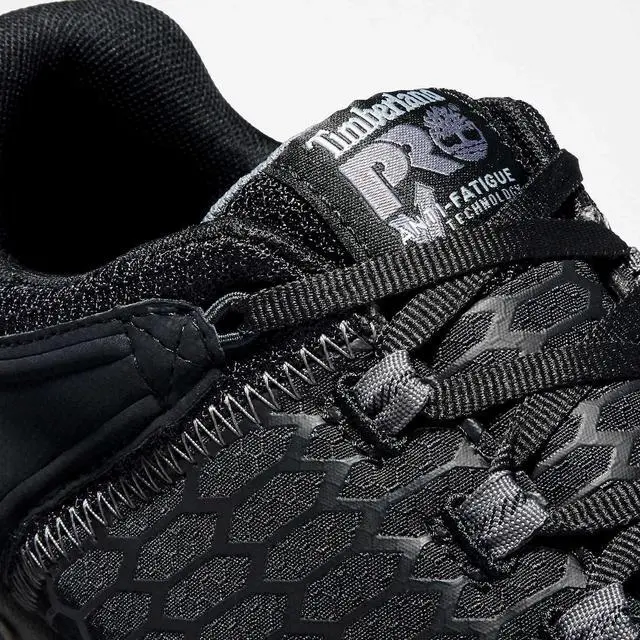 Our Timberland PRO® Powertrain Sport athletic work shoes offer lightweight performance, but they're all business when it comes to protection. Not only are they tough enough to handle working on your feet all day, they feature alloy safety toes, Anti-Fatigue Technology for all-day shock absorption and energy return, and they are designed for Electro Static Dissipating (ESD) compliance to minimize hazards from static electricity buildup. Their breathable, moisture-wicking linings are made of ReBOTL fabric containing at least 50% recycled plastic. Plus, their outsoles are made of heat-, oil-, slip-, and abrasion-resistant, non-marking polyurethane for enhanced traction and comfort.