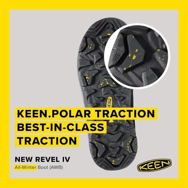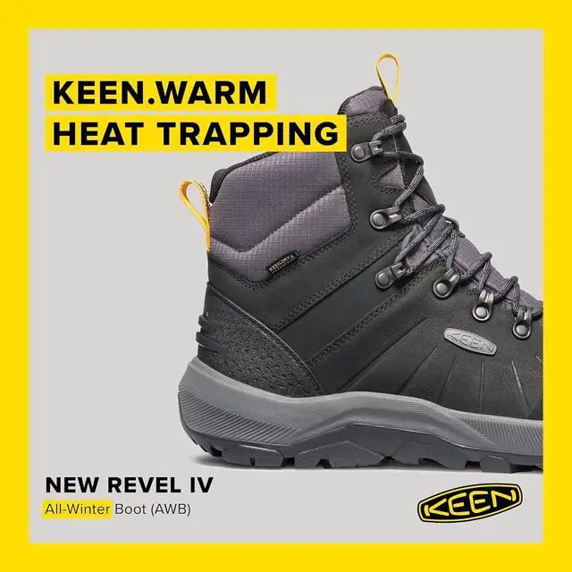 Built for lasting performance, the Revel 4 Mid Height Snow Boot features waterproof, breathable protection and comfort-minded construction to keep feet happy mile after mile. made with a thermal heat shield inside to capture warmth and featuring a Speed lace webbing system, the womens Revel 4 Mid Height Snow Boot is built off KEEN's traditional wider footwear form. KEEN products are consciously created using a natural, pesticide-free probiotic-based technology called Eco Anti-Odor for breaking down odor in sweat, PFC-free water repellent (in applicable styles) and leather sourced from Leather Working Group (LWG) -certified tanneries.