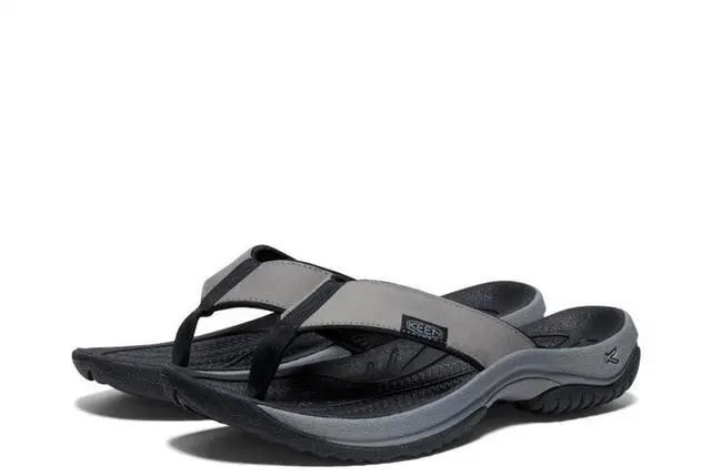 KEEN Men's Kona Waterproof Leather Flip-Flop - Steel Grey/Black, Size 10