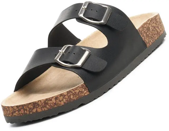 Customizable Fit: These flat sandals for women feature a double-strap design with silver buckles that adjust for a perfect fit, molding comfortably to the shape of your foot. Ideal for medium width feet.