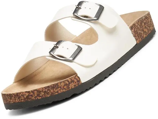 Customizable Fit: These flat sandals for women feature a double-strap design with silver buckles that adjust for a perfect fit, molding comfortably to the shape of your foot. Ideal for medium width feet.
