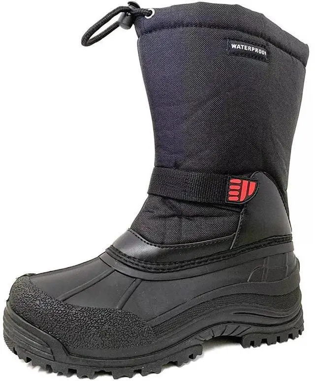 This men's Winter Snow Boots is comfort, stylish and warm. Nylon Upper, Thermolite Insulation for Warmth, Hook-and-Loop Strap and Bungee Closure, Removable Thinsulate inner boot, Waterproof. Good ideal for outdoor activities in winter.