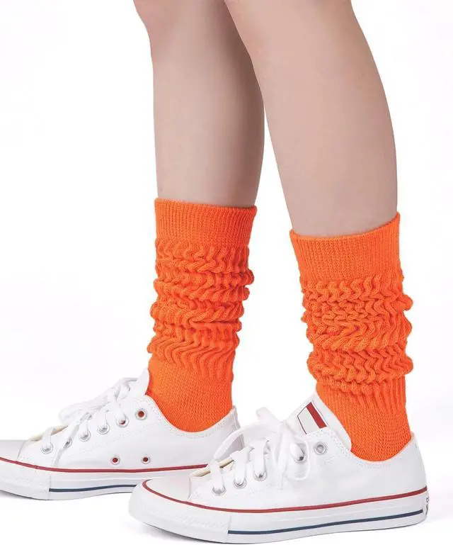 SLOUCHY FIT: Strechy slouchy socks can be adjusted to whatever height you want.Easily extended to cover calf as knee high socks.Mid-calf long socks to style up your stacked look.Also work out great as normal crew socks when worn scrunched.