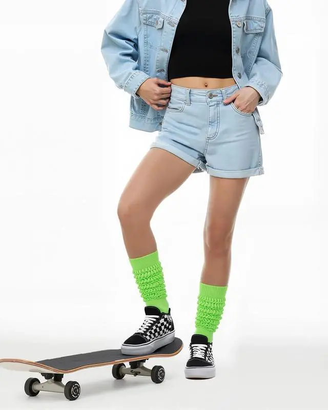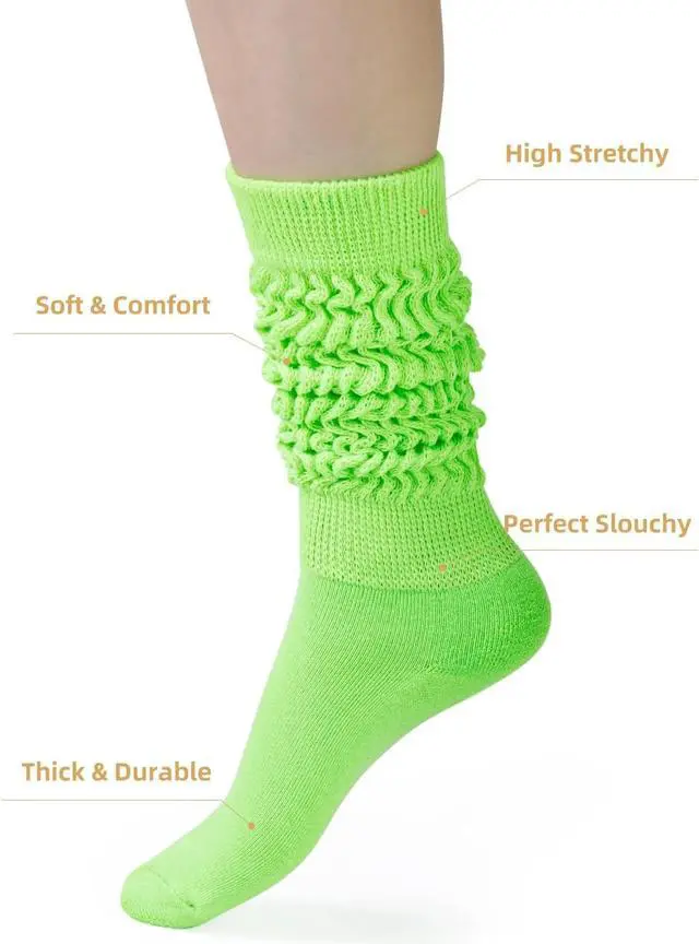 SLOUCHY FIT: Strechy slouchy socks can be adjusted to whatever height you want.Easily extended to cover calf as knee high socks.Mid-calf long socks to style up your stacked look.Also work out great as normal crew socks when worn scrunched.