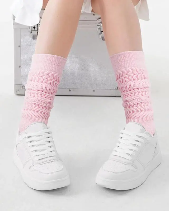 SLOUCHY FIT: Strechy slouchy socks can be adjusted to whatever height you want.Easily extended to cover calf as knee high socks.Mid-calf long socks to style up your stacked look.Also work out great as normal crew socks when worn scrunched.