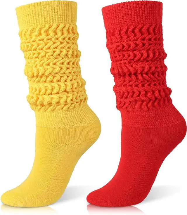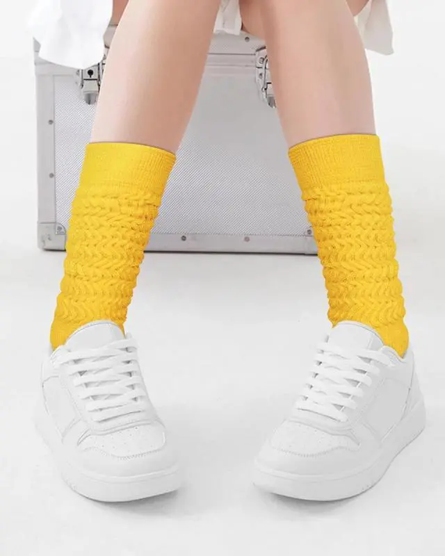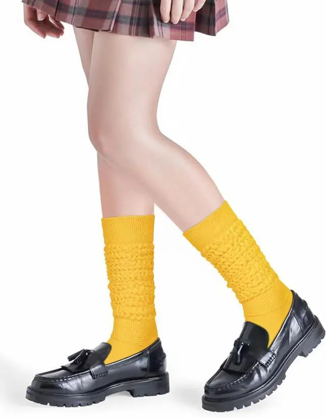 SLOUCHY FIT: Strechy slouchy socks can be adjusted to whatever height you want.Easily extended to cover calf as knee high socks.Mid-calf long socks to style up your stacked look.Also work out great as normal crew socks when worn scrunched.