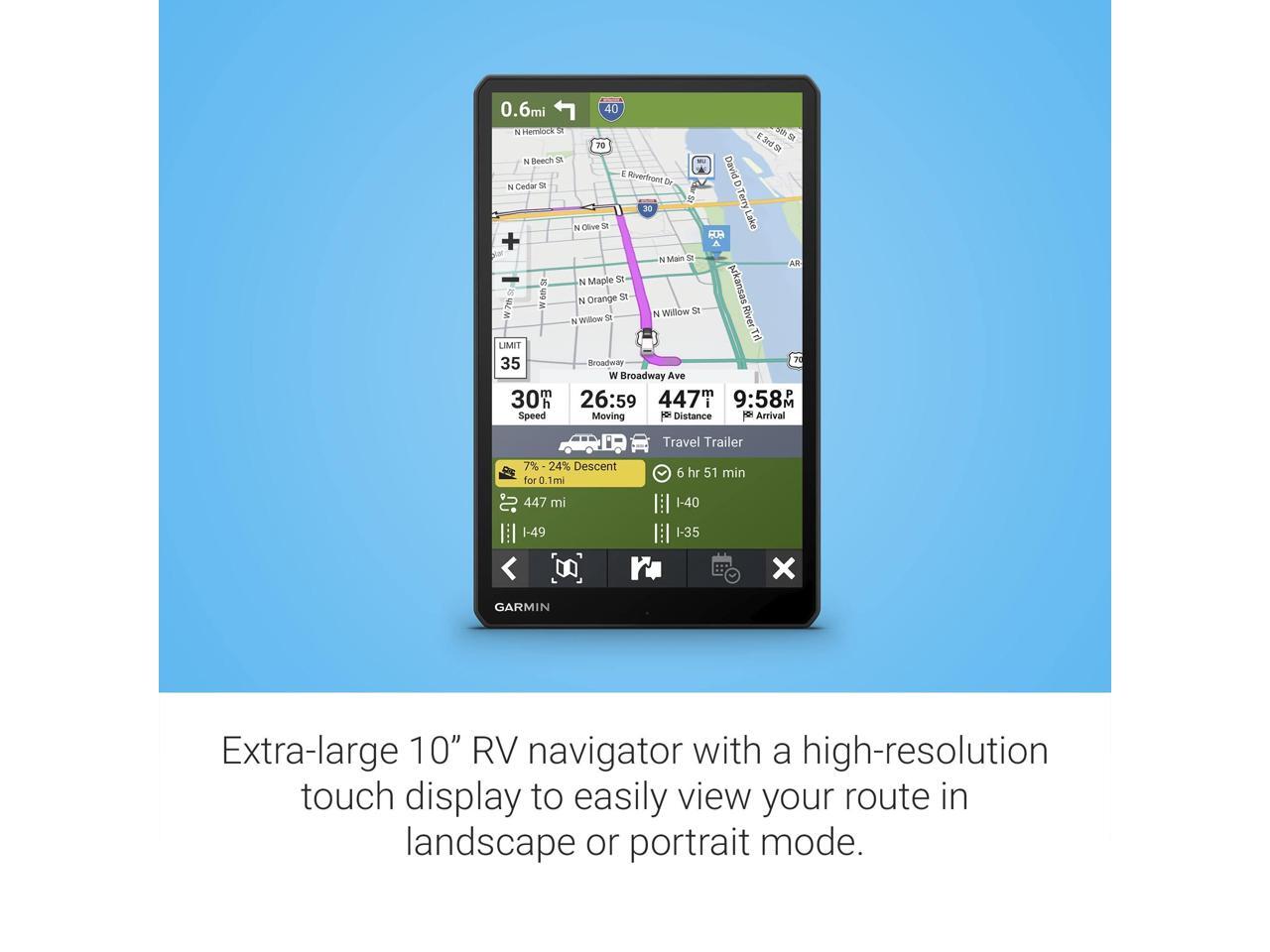Garmin RV 1095, Extra-Large, Easy-to-Read 10 GPS RV Navigator, Custom RV Routing, High-Resolution Birdseye Satellite Imagery, Directory of RV Parks and Services, Landscape or Portrait View Display