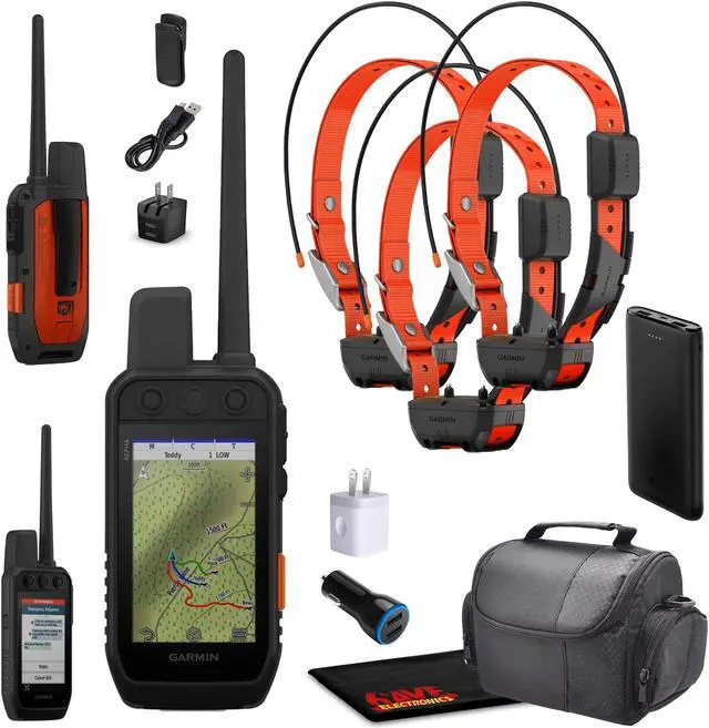 6ave Bundle Includes: 1x Garmin Alpha 300i Handheld, GPS Dog Tracking and Training Handheld 3x Garmin Alpha TT25 Tracking Collar For Dogs 1x USB Adapter 1x USB Car Adapter 1x Microfiber Cleaning Cloth 1x P-Bank Battery 1x Field Bag