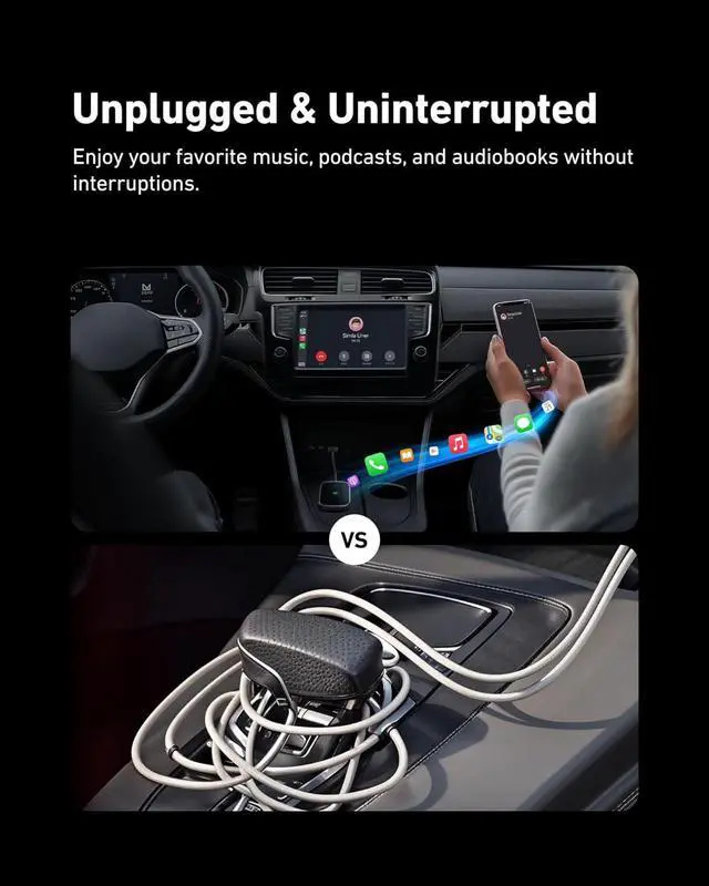 CUT THE WIRES - Tired of the mess of tangled cables in your car? Easily upgrade your wired connection to a wireless one with our wireless carplay adapter. Say goodbye to tangled cables and enjoy wireless drive!