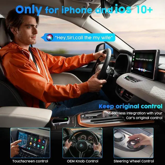Getting started with the wireless carplay dongle is quick and easy with a 3-step setup that doesn't require any additional apps or drivers. After the initial setup, it will automatically activate the CarPlay wireless connection every time the car is started. This wireless carplay supports Siri voice control, steering wheel, touch screen and knob operation.