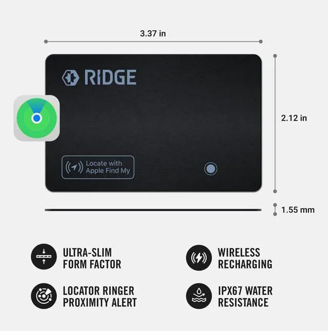 Ridge Wallet Tracker Card - Tile Slim Tracking Card Compatile with Apple Find My, Item Locator for Luggage Tags, Passports, Phone, IP68 Waterproof