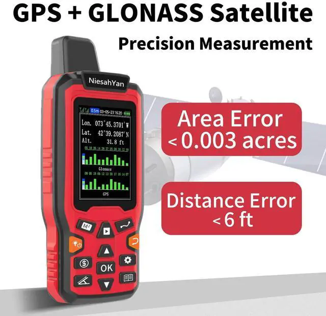 Recommended to measure Area: above 0.16 acres Distance: above 328 ft.The larger the measurement range, the smaller the error.And the precision of this device is within 6ft.