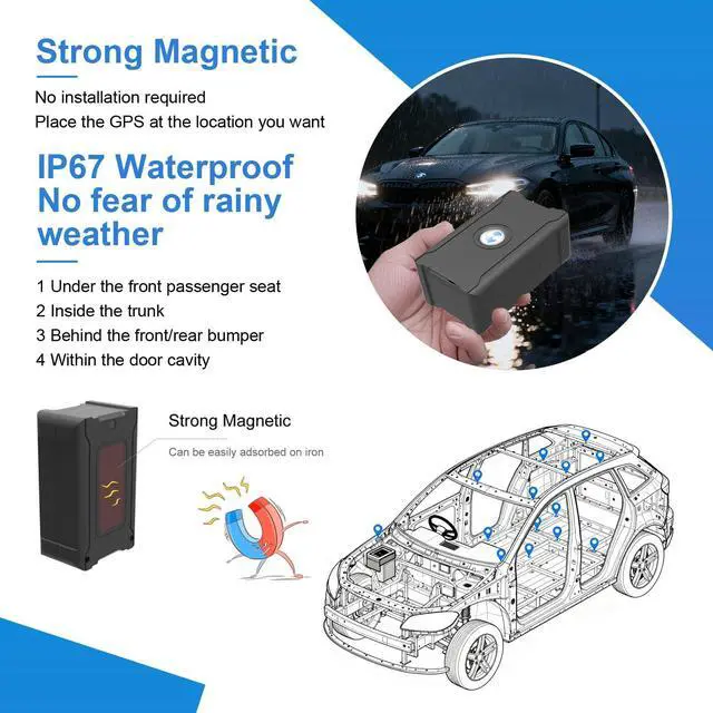 GPS Tracker for Vehicles Hidden Magnetic Car Tracker Device Geo-fence overspeed alarm Real-time Tracking Light Sensor and Disassemble Alarm Strong Magnetic Vibration Alarm Long Life Battery Global Coverage