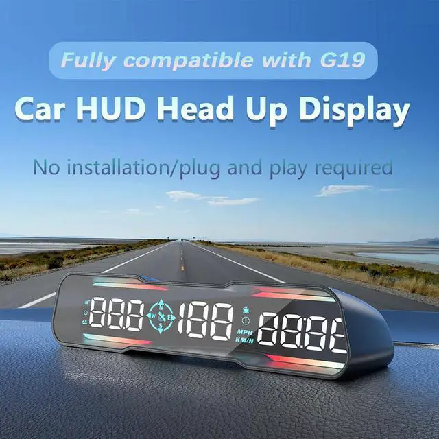 G19 hud display for car, user interface is intuitive and simple, clear screen, large font, you can set the speeding alarm and fatigue driving time reminder. Multi-function display, can switch speedometer, compass, driving distance, calendar, altitude driving height, mileage and time