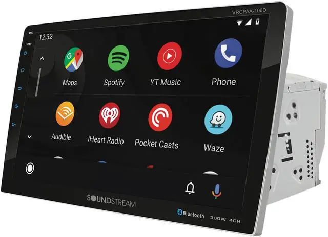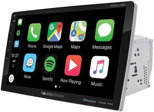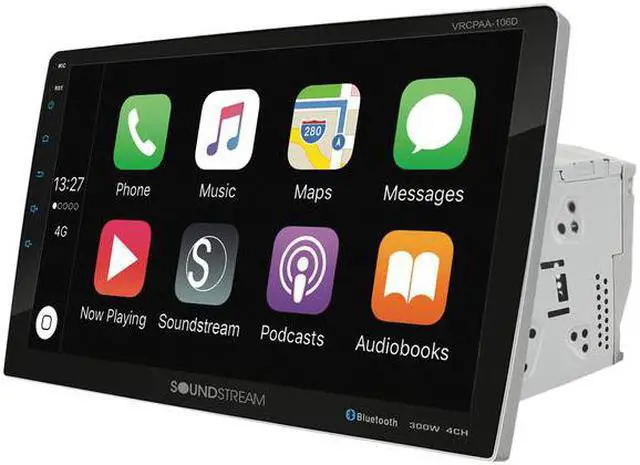 VRCPAA-106 General Information 2-DIN Multimedia System w/ Swiveling HD 10.6 LCD ISO 2-Din Chassis, Mounting Brackets Included Apple CarPlay With Siri Eyes Free Built-In Android Auto With Google Assistant Built-In SiriusXM-Ready (vehicle tuner and subscription required) HD 10.6 1, 024×600 LCD w/ Adjustable Backlight 7-Color RGB LED Illuminated Keys & Accents Vertical Adjustment Mechanism for Optimum Viewing SmartSense Clear Glass Capacitive Touchscreen Bluetooth Phone Calling + A2DP Audio Streaming RCA Back-up Camera Input w/ +12V Auto-on Trigger Front Camera RCA Input w/ On-Screen Trigger 10-Band 14dB Boost/Cut Equalizer & Preset EQs SiriusXM Satellite Radio Ready Only SiriusXM® brings you more of what you love to listen to, all in one place.