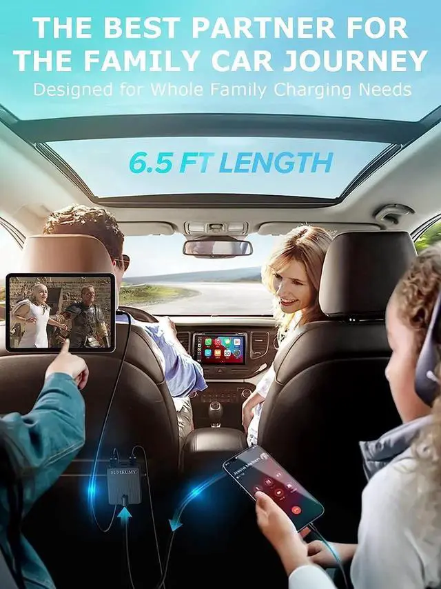 2. Extended 6.5 ft cable design, more convenient and practical than other 5ft iphone 13 pro max car charger. Easily Reaches from Front to Back seats.