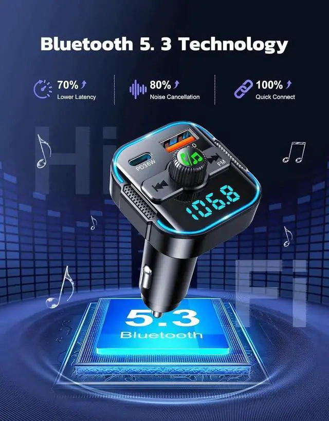 ![Alt view image 2 of 7 - AUTYUE Upgrade Bluetooth 5.3 Car Adapter [PD 36W+QC3.0 18W], 2-in-1 FM Transmitter [Dual Stronger Mics] & Fast Car Charger, Wireless FM Radio Adapter Hands-Free Call, Siri Assistant](https://c1.neweggimages.com/productimage/nb640/C601S26042006KWZX4E.jpg)