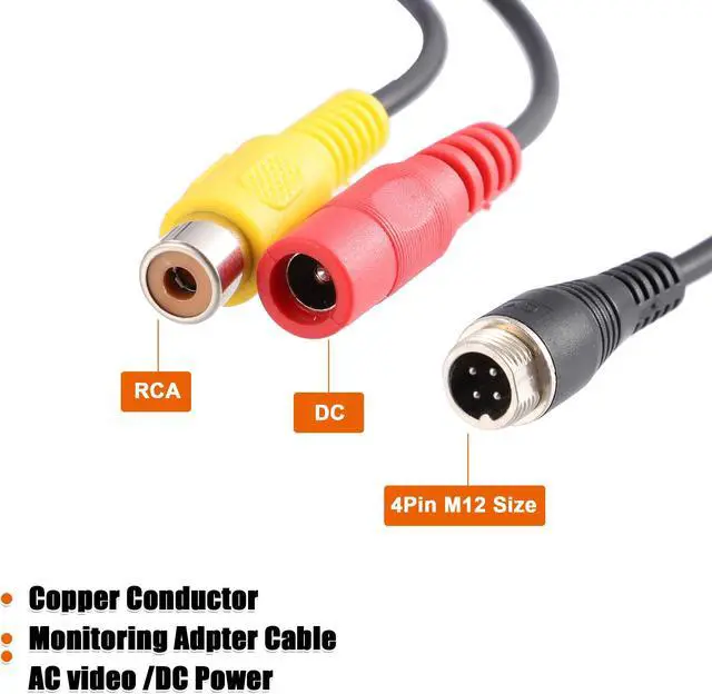 2pcs Car Camera Adapter 4 Pin to RCA Adapter M12 4-Pin Male to RCA AV DC Female Connector Wire Monitor Video Cable Adapter