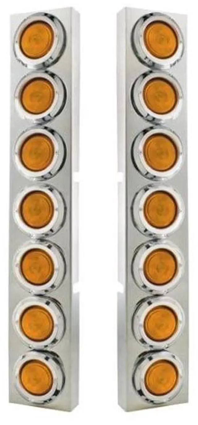 United Pacific 34682 Kenworth Stainless Front Air Cleaner Bracket w/Fourteen 2" Flat Lights & Bezels - Amber Lens