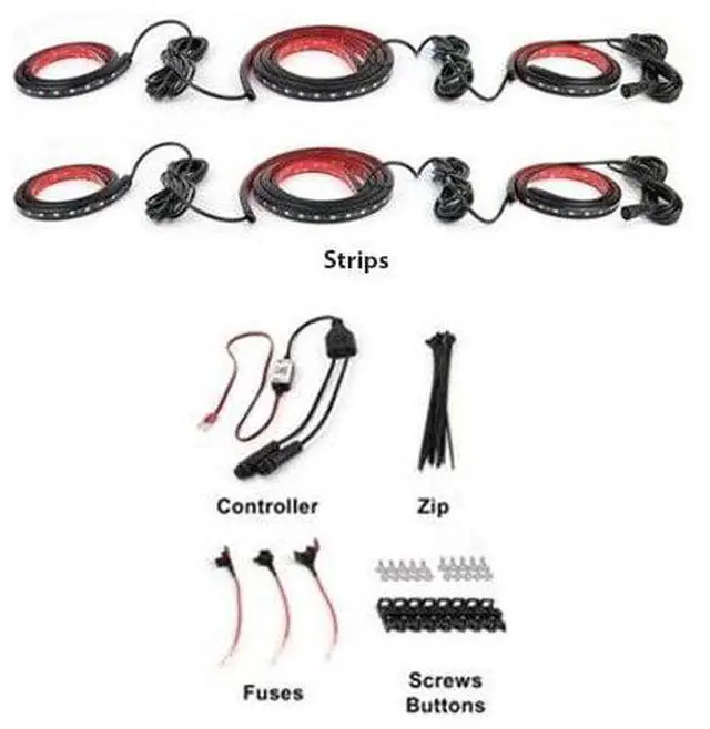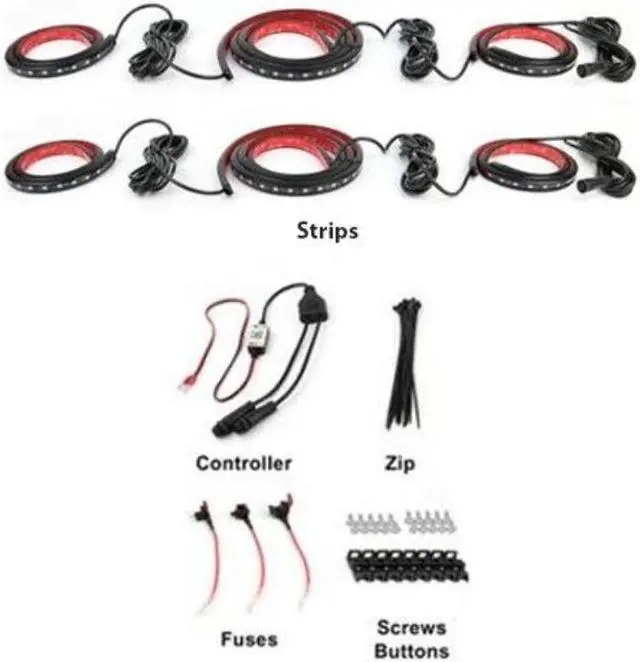 Experience the ultimate underbody light show with RSUCACS kit! Combining Race Sports ColorADAPT and ColorSMART controls, it offers millions of colors, patterns, fades, and functions through RGB Chasing diode technology. With ample strip length, it fits most regular-sized vehicles, illuminating wheel wells, side frames, front, and back frames for a dazzling display.