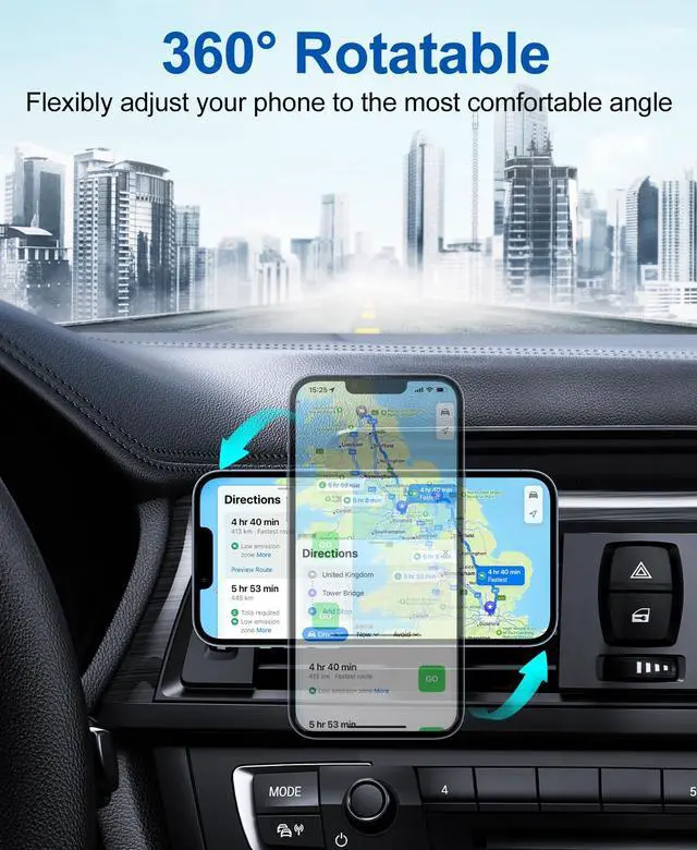The 360° ball joint allows you to set a comfortable viewing angle and easily switch between landscape or portrait navigation with one hand.