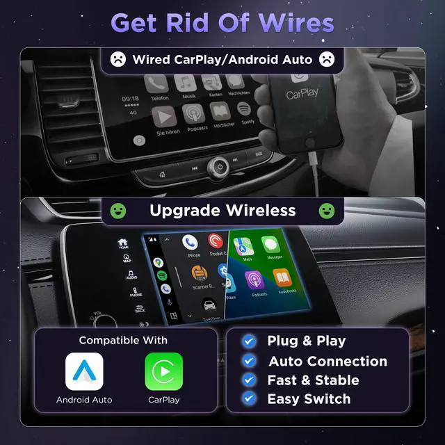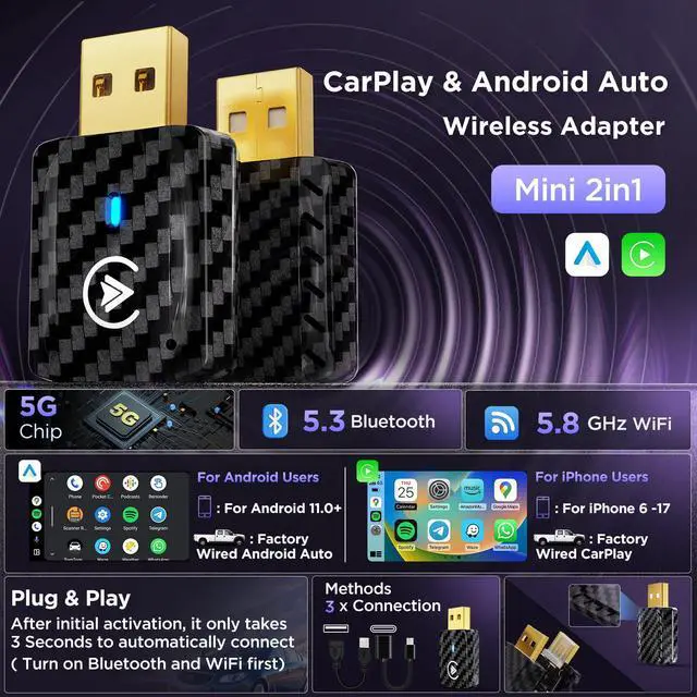 | Compatible Devices | Compatible with cars with wired carplay/Android auto system, Compatible with iPhone 17 all the way down to iPhone 6 & android 11.0 and above |